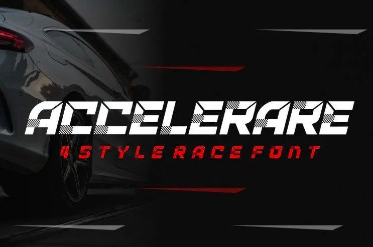 Hello talented designers, we're excited to introduce you to the highly attractive Accelerare Font. This modern and cutting-edge sans serif typeface features a racing speed car motor theme, making it ideal for large display designs.