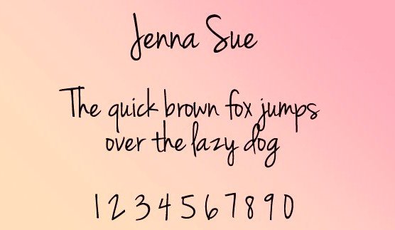 The Jenna Sue Font is available to download free for personal use but if you want to use it for commercial purpose then you might need permission from the owner.